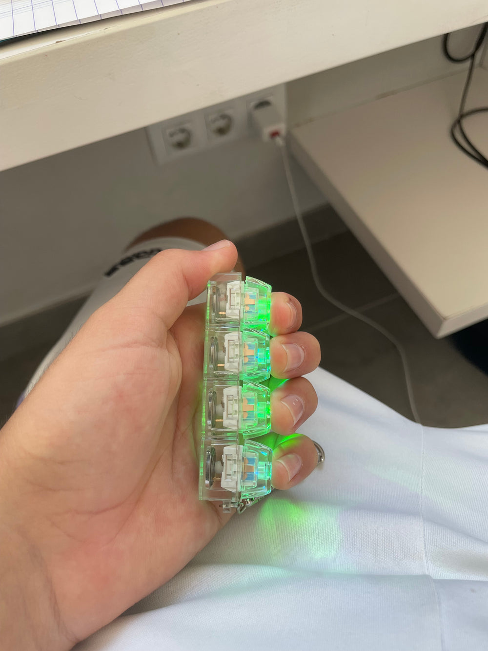 Este mini teclado mecánico de 4 teclas cabe en tu bolsillo o llavero, listo para acompañarte a todas partes. Cada tecla ofrece un click táctil que libera estrés y ayuda a concentrarte al instante. Ideal para estudiantes, profesionales o cualquier persona que quiera un momento de relajación en cualquier lugar. Su diseño resistente y divertido lo convierte en el gadget perfecto para llevar siempre contigo.